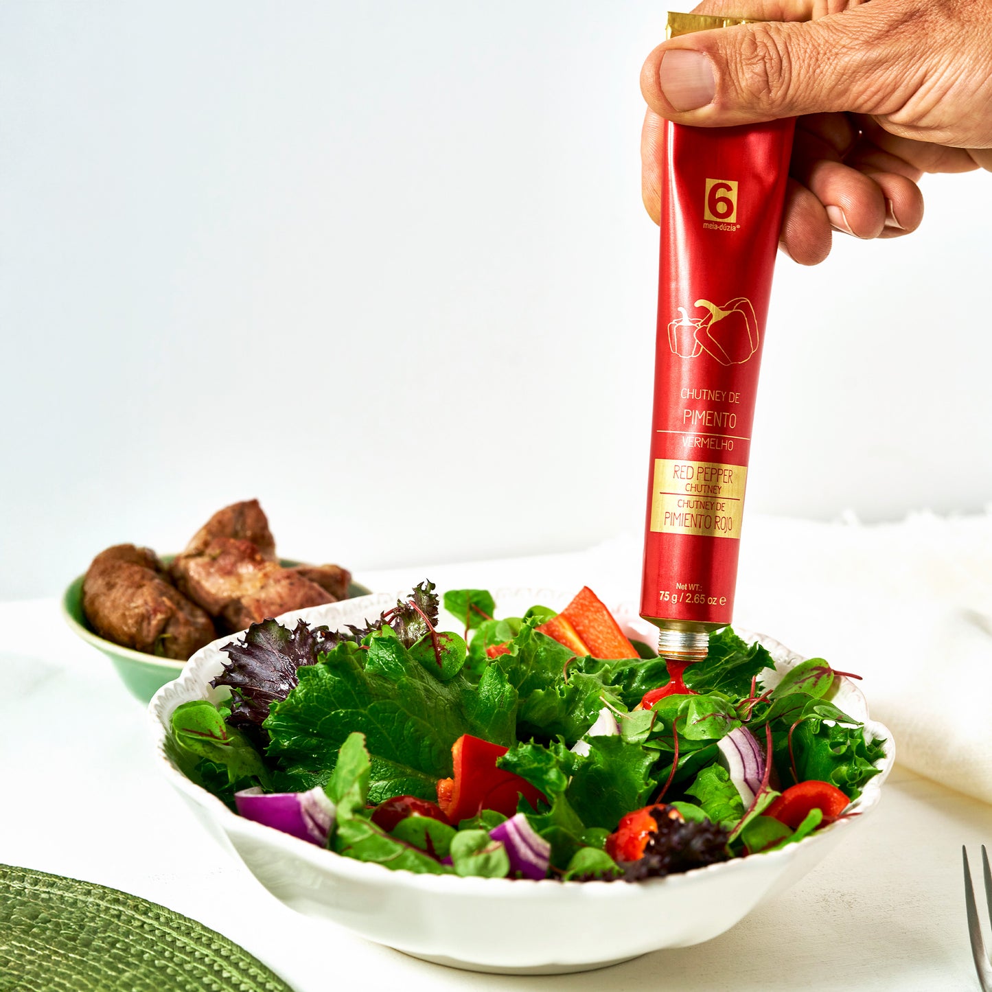 The Smoked Red Pepper Chutney combines ingredients that reflect both the authenticity of Portuguese agriculture and the heritage of spices brought by the Discoveries. From the red peppers of northern Portugal to the freshness of lemon and the aromatic warmth of ginger, this chutney is a tribute to the diversity and richness of flavors.
