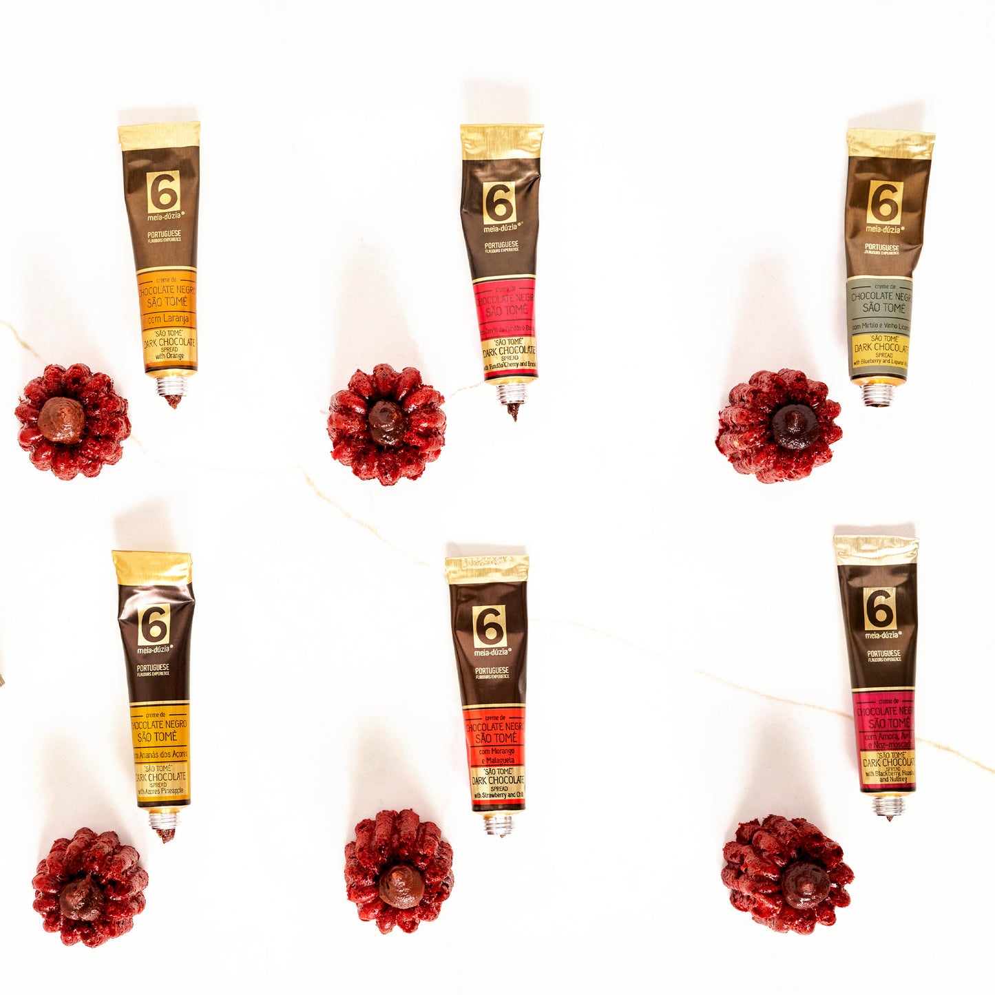 The chocolate spreads in tubes by meia.dúzia® are internationally recognized for their innovation and quality, having won multiple awards for both taste and design. This unique way of presenting Portuguese chocolate blends artisanal tradition with practicality and elegance.