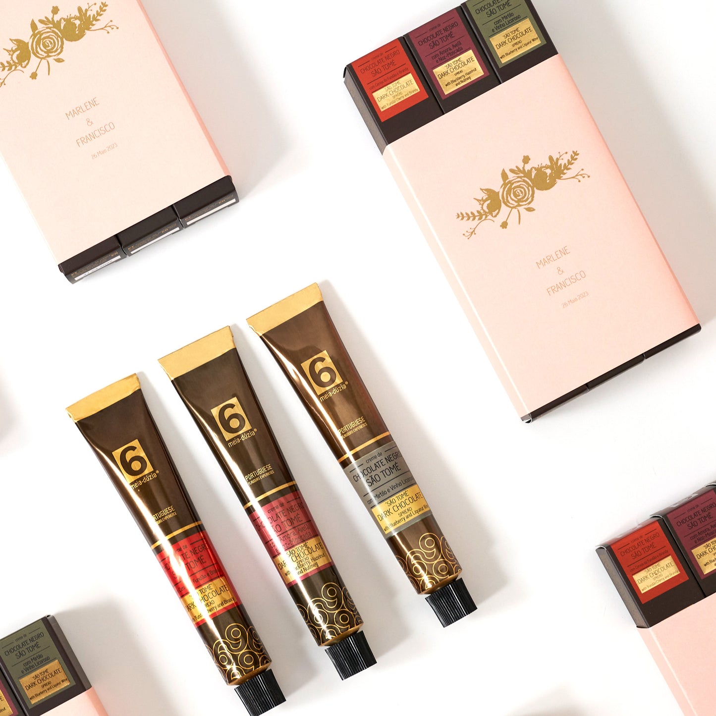 Delight your guests with handcrafted wedding favors made with Portuguese-sourced ingredients and uniquely designed packaging inspired by tradition. This collection includes jams, honey, olive oils, liqueurs, and chocolates in personalized boxes - perfect for sharing on your special day.