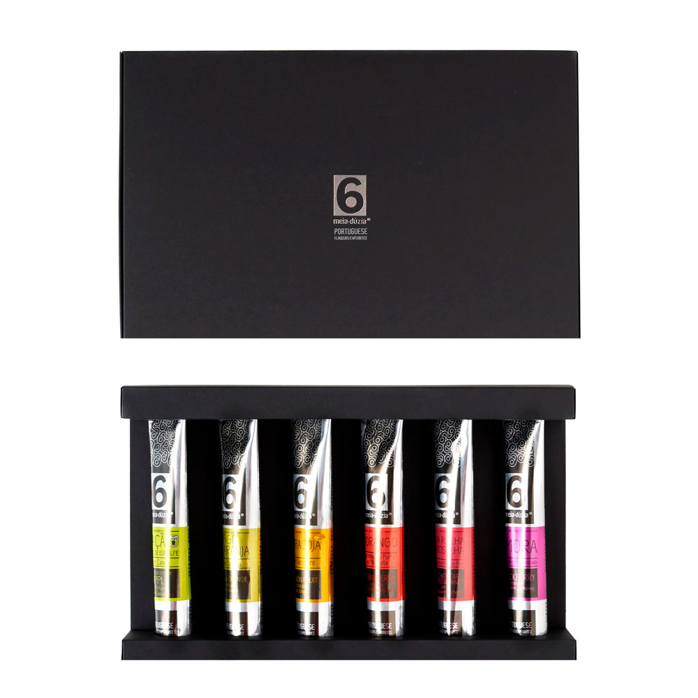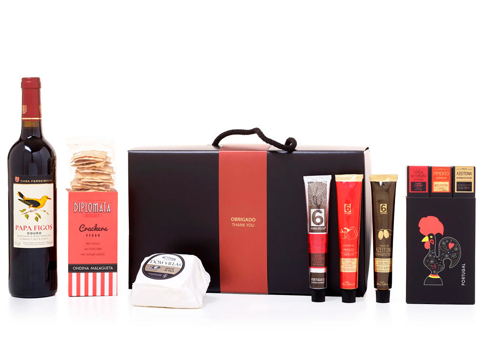 Box with a selection of the best extra virgin olive oils from Portugal, organic, mixed with spices and flavored olive oils, a unique Gourmet gift.